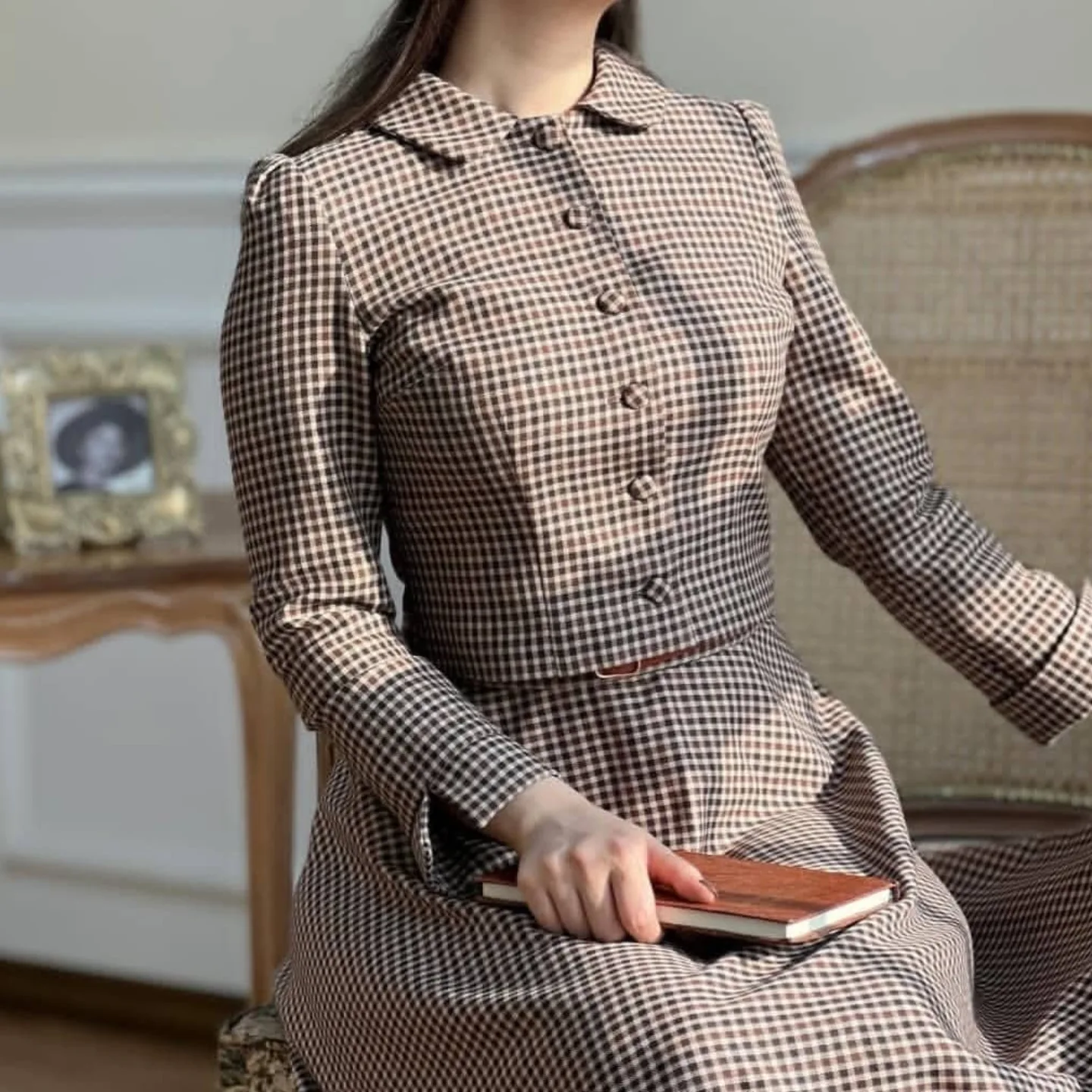 تصميم كلاسيكي راقٍ بنقشة مربعات صغيرة