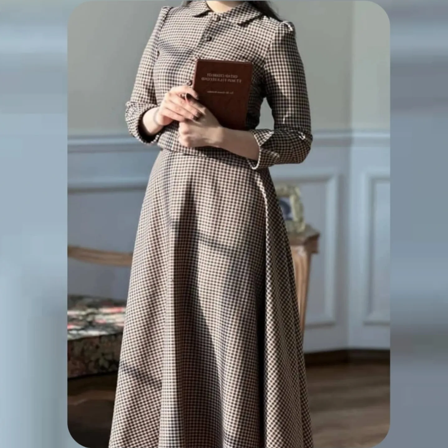 فستان بنقشة الكارو الكلاسيكية – أناقة خالدة بتفاصيل راقية